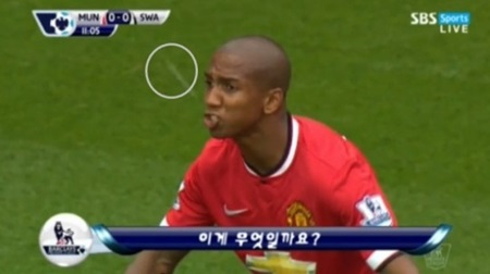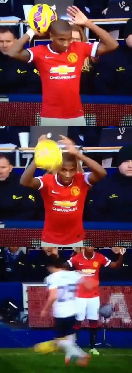 이날 경기에서 선발 출장한 애슐리 영은 경기 도중 던지기를 하려다 굴욕을 당했다. 공을 던지려고 머리 뒤로 넘긴 뒤 던지려는 순간 공이 머리를 타고 미끄러지면서 경기가 속개된 것. 설상가상으로 공은 토트넘 선수에게로 향해 어이없게 공격권까지 뺏기게 됐다.