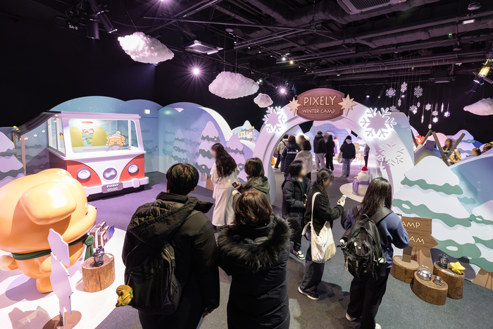이번 전시는 관람객이 다채로운 체험을 할 수 있도록 구성되어 호평을 얻었다. 우선, ‘픽셀리’ 캐릭터를 겨울 캠핑장 콘셉트의 소품과 함께 배치해 관람객이 기념사진을 남길 수 있도록 했다. 50평 규모의 이머시브 미디어 영상존에서는 ‘미수반’의 세계관을 다면 스크린으로 구현하며 높은 몰입감을 제공했다.