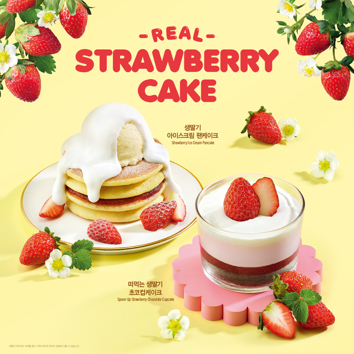 ‘생딸기 아이스크림 팬케이크’는 따뜻한 팬케이크 위에 딸기 시럽과 시원한 바닐라 아이스크림, 부드러운 플로팅 크림을 더해 풍부한 식감과 달콤하고 부드러운 맛이 조화를 이룬 메뉴다. ‘떠먹는 생딸기 초코컵케이크’는 초코 시트와 딸기잼, 딸기맛 크림, 플로팅 크림을 층층이 레이어링해 달콤함과 상큼함을 동시에 즐길 수 있는 디저트다.