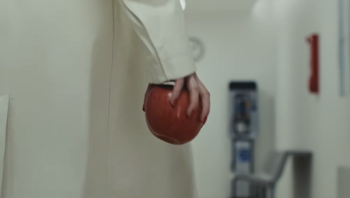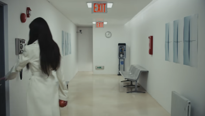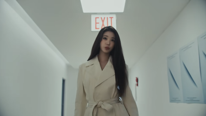 공개된 영상 속 장원영은 순백의 화이트 트렌치 코트를 입고 정적이 흐르는 복도에 등장한다. 일정한 리듬의 구두 소리와 함께 복도를 가득 채운 장원영의 휘파람 소리는 마치 영화 ‘킬빌’의 명장면을 연상시키며 보는 이들의 전율을 돋게 한다. 특히 한 손에 붉은 사과를 든 채 무표정하게 카메라를 응시하며 걷는 그녀의 모습은 차가운 냉미녀의 정석과 우아한 아우라를 동시에 뿜어낸다.