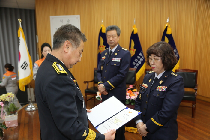 신임 의용소방대 대장으로는 ▲박미영(응급처치전문대) ▲이옥순(서면여성대) ▲김민규(북산남성대) ▲나민영(신동여성대) 대장이 취임했으며, ▲김연희(신북여성대) 대장은 연임했다.