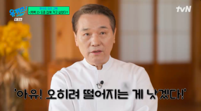 그는 “그 순간에 ‘오히려 떨어지는 게 낫겠다’ 싶었다”며 고된 촬영 시간에 고개를 저었다.