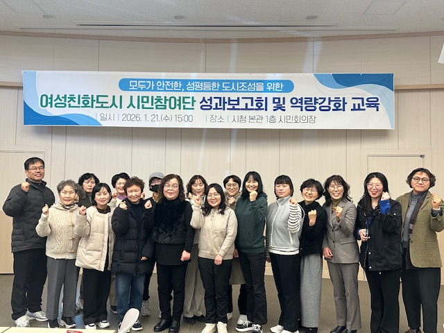 이번 자리는 지난해 시민참여단의 활동 성과를 공유하고, 2026년 활동 방향을 모색하기 위해 마련됐다. 시민참여단은 다중이용시설 모니터링, 정책 제안, 홍보활동 등 다양한 활동을 통해 여성친화도시 조성에 기여했으며, 보고회를 통해 주요 실적과 향후 보완사항을 함께 논의했다.