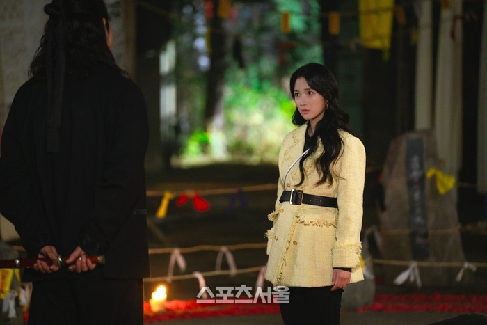 그런 가운데 극의 판도를 뒤흔들 새로운 인물이 나타난다. 공개된 사진 속 은호를 한 발 뒤에서 지켜보는 낯선 남자와 이윤의 모습이 눈길을 끈다. 낯선 남자의 정체는 미스터리 박수무당 ‘장도철’로 그 아우라가 심상치 않다. 함께 서 있는 이윤과의 명확한 관계는 알 수 없지만 ‘악’과 ‘악’의 공조를 짐작게 한다.