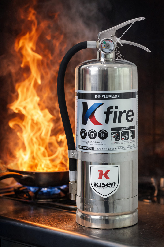 K급 소화기는 분사 시 기름 표면에 소화막을 형성해 산소를 차단하고 온도를 낮춰 재발화를 방지한다. 사용할 때는 불꽃의 위에서 아래로 천천히 분사해 화염을 먼저 눌러야 하며, 급하게 아래쪽을 향해 분사할 경우 분사압력으로 인해 오히려 화재가 확산될 수 있어 주의가 필요하다.