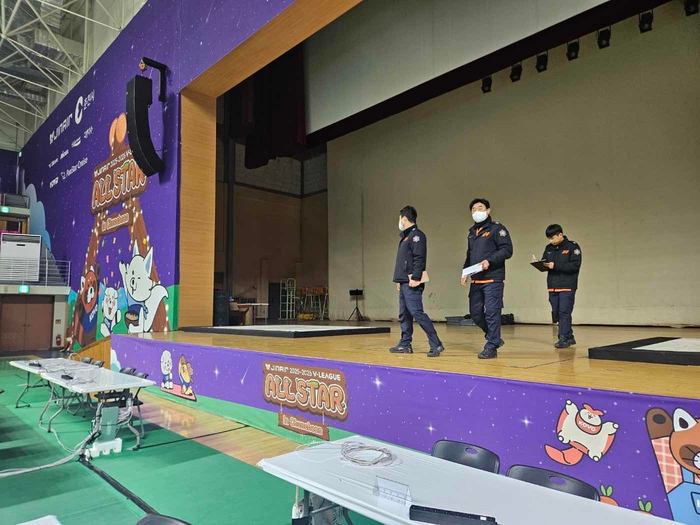 춘천시와 춘천소방서, 춘천경찰서, 한국배구연맹(KOVO) 관계자들은 23일 춘천 호반체육관 경기장의 내·외부 시설과 관람객 동선 및 출입 통제, 비상대피로 확보 여부, 소방·전기·가스 시설 안전 상태, 의료지원 및 응급대응 체계, 주차장 및 외부 교통관리 방안 등을 중점적으로 점검했다. 오는 25일 열리는 행사에는 올스타 선수 40명과 2,000여 명의 관람객이 참여할 것으로 예상되고 있다.
