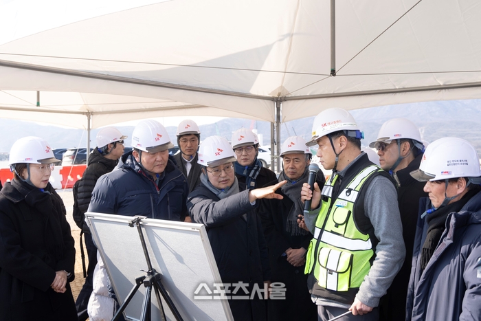 간담회 이후 김 지사는 박호현 SK하이닉스 용인CPR 부사장과 산단 조성 현장으로 자리를 옮겨 공사현장을 점검했다. 김 지사는 직접 헬맷을 쓰고 현장에서 진행 상황에 대해 보고를 받은 후 기자들과 만나 다음과 같이 말했다.