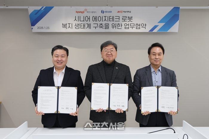 [스포츠서울 | 백승관 기자] 재능대학교(총장 이남식)는 23일 재능관 13층 대회의실에서 패션그룹형지, 헥사휴먼케어와 함께 ‘시니어 에이지테크 로봇 복지 생태계 구축’을 위한 3자 업무협약(MOU)을 체결했다.