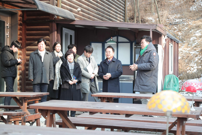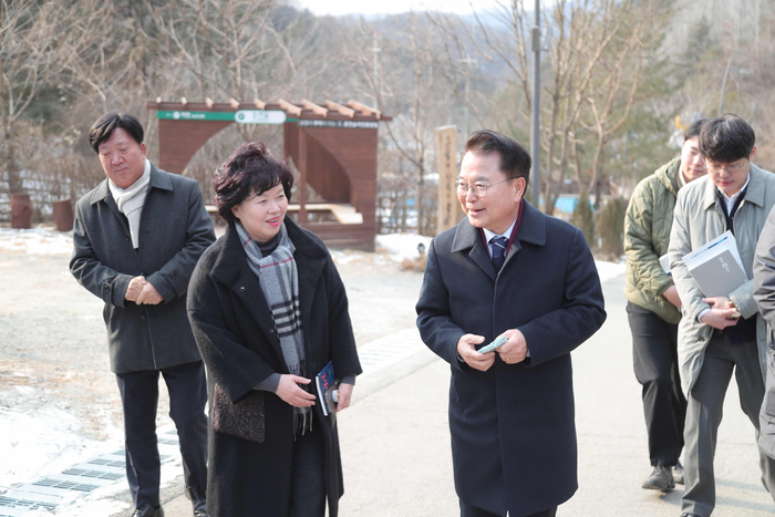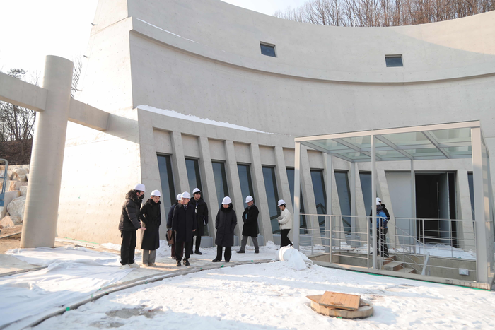 [스포츠서울ㅣ춘천=김기원기자]육동한 춘천시장이 23일 동산면 군자리 춘천숲자연휴양림과 안식공원 내 제2안식의 집(봉안당) 건립 현장을 방문해 사업장 현장과 공사 진행 상황을 점검했다.