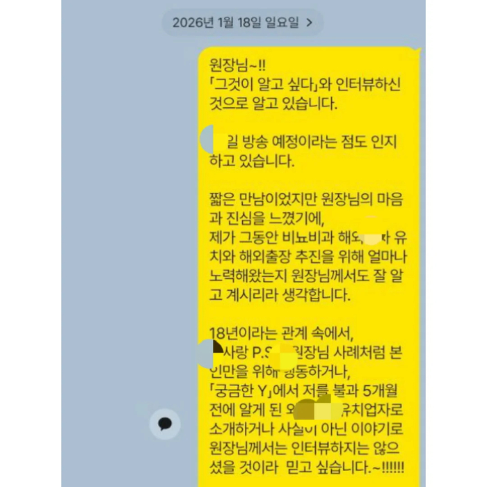 특히 A씨는 시청률을 위해 본인에 대한 허위 사실이나 남편과의 통화 내용을 인터뷰인 것처럼 방영할 경우 법적 조치에 나설 것임을 분명히 했다. 그는 “PD님께서는 시말서 한 장으로 끝나겠지만, 저에게는 지켜야 될 가족이 있다”라며 강력한 경고의 메시지를 전했다.