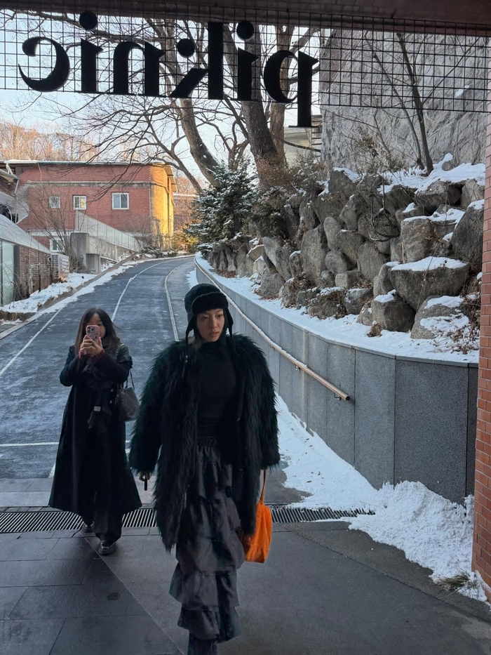 공개된 사진 속 황신혜는 패셔니스타다운 감각적인 스타일링으로 눈길을 끌었다. 그는 풍성한 프릴 디테일이 돋보이는 롱스커트에 퍼 재킷을 매치하거나, 독특한 디자인의 모자와 귀여운 키링이 달린 가방으로 포인트를 주며 60대라는 나이가 믿기지 않는 힙한 패션 센스를 뽐냈다. 특히 전시장 야외 테라스에서는 박용만 전 회장과 나란히 서서 다정한 포즈를 취하며 의외의 친분을 과시하기도 했다.