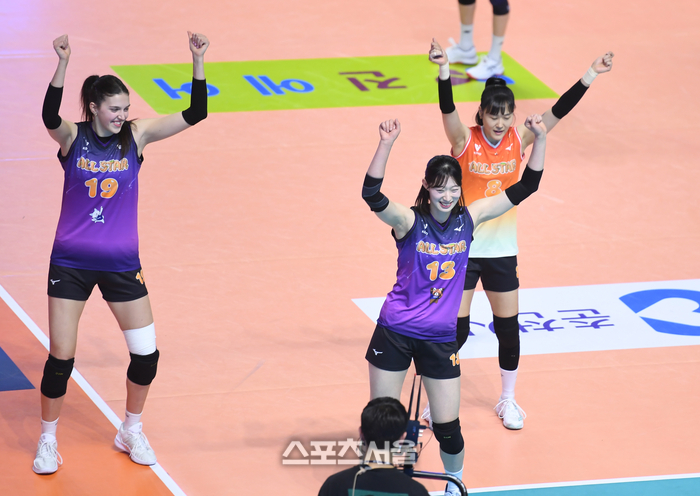 빅토리아, 최정민, 임명옥(왼쪽부터)가 25일 춘천 호반체육관에서 열린 2025-2026 V-리그 올스타전에서 댄스를 선보이고 있다.