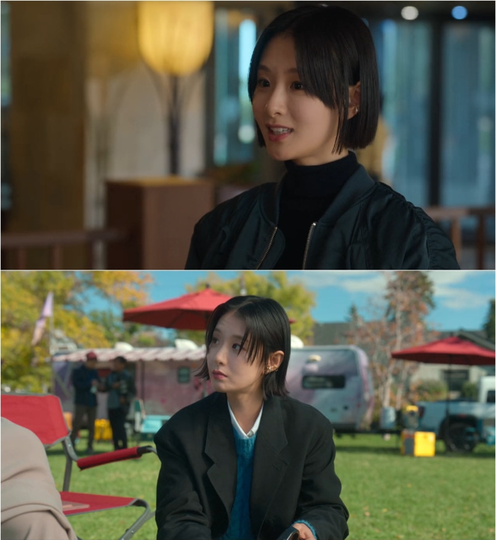 나나미는 언제 어디서나 차분하고 시크함을 잃지 않는 커리어우먼으로 감정보다는 이성을 따르는 캐릭터다. 현리는 섬세한 연기는 물론이고 칼단발 헤어스타일과 세련된 스타일링으로 도회적인 비주얼을 완성하며 나나미 캐릭터를 설득력 있게 그려냈다.