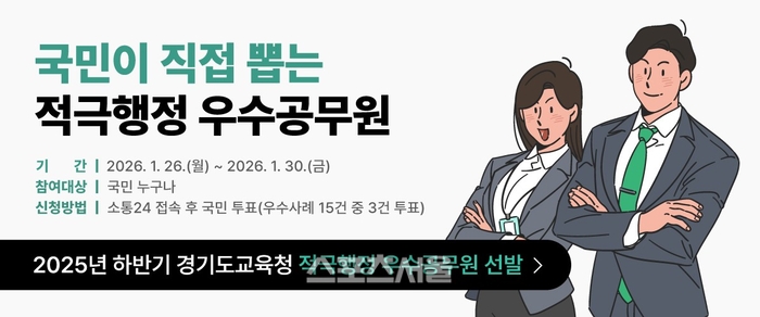 〔스포츠서울│수원=좌승훈기자〕경기도교육청은 공공의 이익을 높인 적극행정 우수공무원 선정을 위한 대국민 심사를 실시한다고 26일 밝혔다.