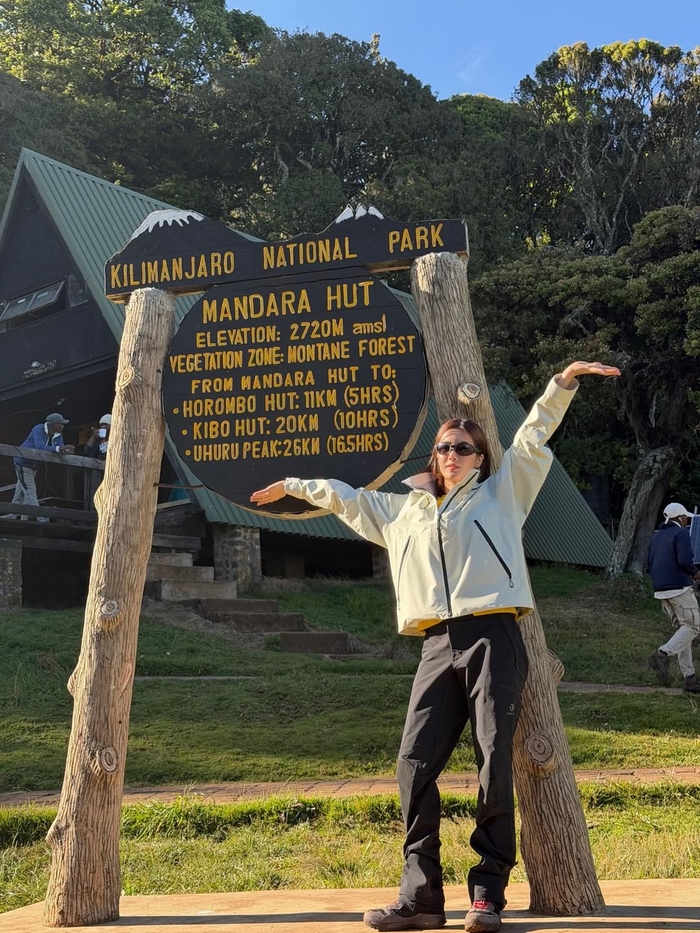 27일 권은비는 자신의 인스타그램을 통해 “2026년, 새로운 도전을 위해 킬리만자로에 도착했다”는 글과 함께 등반 현장 사진을 공개했다. 사진 속 권은비는 킬리만자로 국립공원 내 ‘만다라 허트(Mandara Hut)’ 안내판 앞에서 밝은 노란색 티셔츠와 아웃도어 복장을 갖춘 채 비장하면서도 설레는 표정을 짓고 있다.