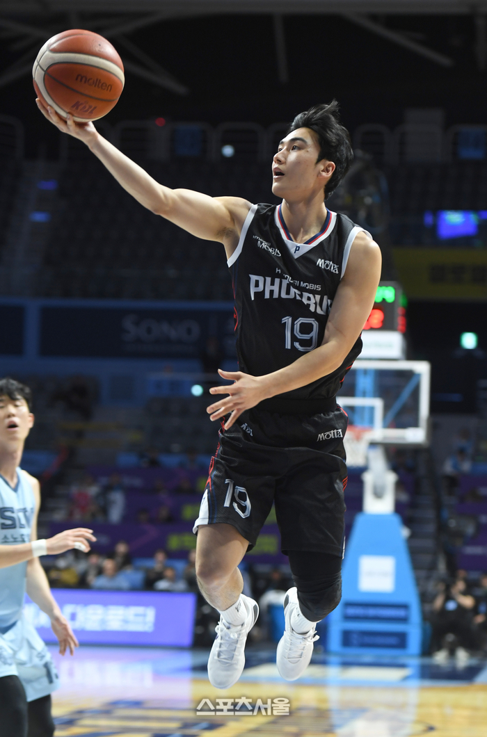 현대모비스 이도헌이 27일 고양 소노 아레나에서 열린 열린 2025~2026 프로농구 고양 소노와 경기에서 레이업슛을 시도하고 있다.