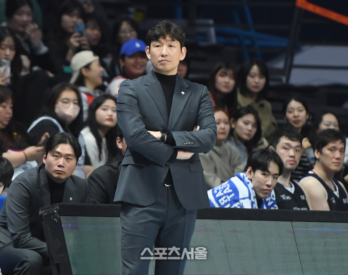현대모비스 양동근 감독이 27일 고양 소노 아레나에서 열린 열린 2025~2026 프로농구 고양 소노와 경기를 지켜보고 이싿.