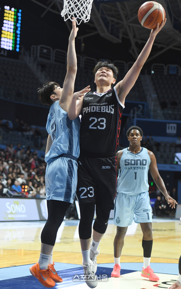 현대모비스 이대균이 27일 고양 소노 아레나에서 열린 열린 2025~2026 프로농구 고양 소노와 경기에서 슛을 시도하고 있다.