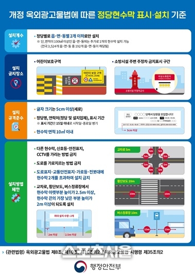 한편, 명절·행사·정책 홍보 등을 위해 게시되는 일반 현수막 역시 ‘옥외광고물법’ 제8조에 따른 적용배제 대상이 아닌 경우에는 반드시 지정 게시대에 설치해야 한다.