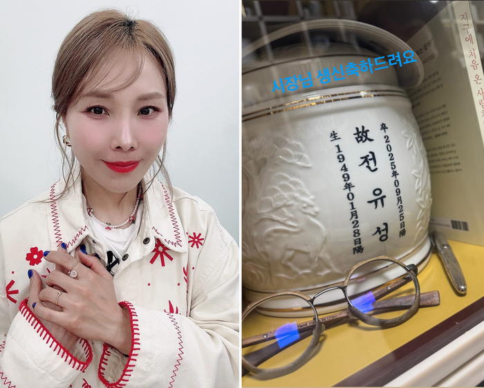 공개된 사진 속에는 고인의 유골함과 함께 생전 고인이 사용했던 안경, 만년필, 그리고 고인을 추억하는 서적이 가지런히 놓여 있다.