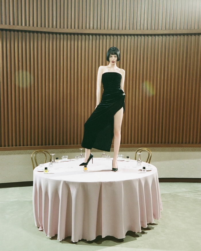 특히 이번 사진에서 나나는 어깨와 쇄골 라인이 시원하게 드러난 블랙 오프숄더 드레스를 입고 과감한 포즈를 취해 눈길을 끌었다. 슬림한 몸매가 강조되는 밀착 드레스와 하단의 깊은 슬릿 사이로 드러난 각선미는 나나의 성숙한 매력을 배가시켰다. 테이블 위에 비스듬히 눕거나 향수병을 소품으로 활용한 몽환적인 눈빛은 마치 감각적인 화보의 한 장면을 연상케 한다.