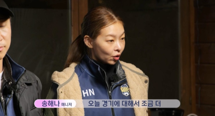 송해나는 “내일 승리를 위해서는 분석도 좀 해야 하고 오늘 경기에 대해서 조금 더 회의하면 좋겠다”며 전력 분석을 예고했다. 선수들은 숨을 죽인 채 모니터를 바라봤다.