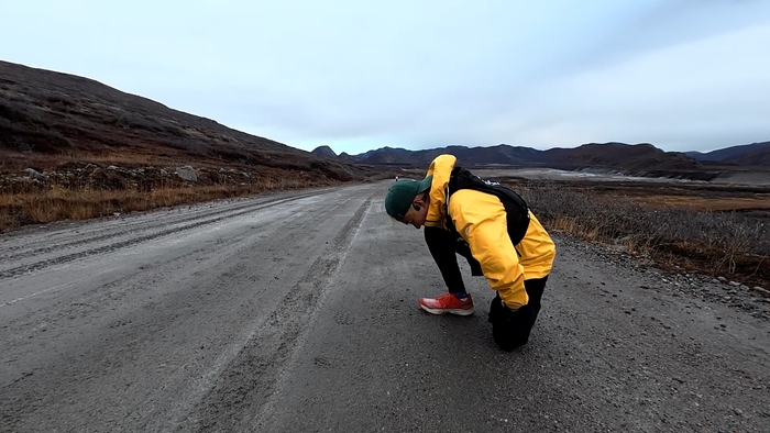 북극의 찬 공기를 깊게 들이마시며 마음을 다잡고, 북극 얼음을 깨 먹고 심호흡을 반복하는 등 자신만의 방식으로 구토감을 조절하려 애쓴다.