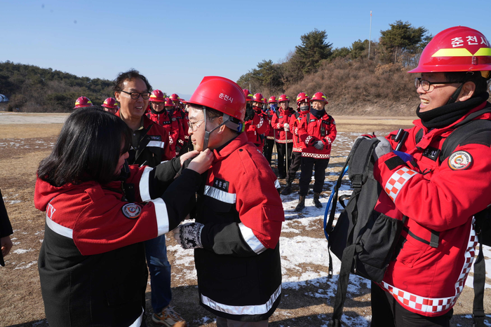 육동한 시장은 “여러분의 희생과 봉사와 노력이 산불 없는 도시를 만드는데 중요한 요소가 될 것”이라며 “화재 재난은 정말 겸손하고 최선을 다해야한다. 훈련을 실전처럼 하시되 추운 날씨에 건강을 잘 유의하고 다치지 말아야한다. 안전한 춘천을 위해 저도 함께하겠다”고 밝혔다.