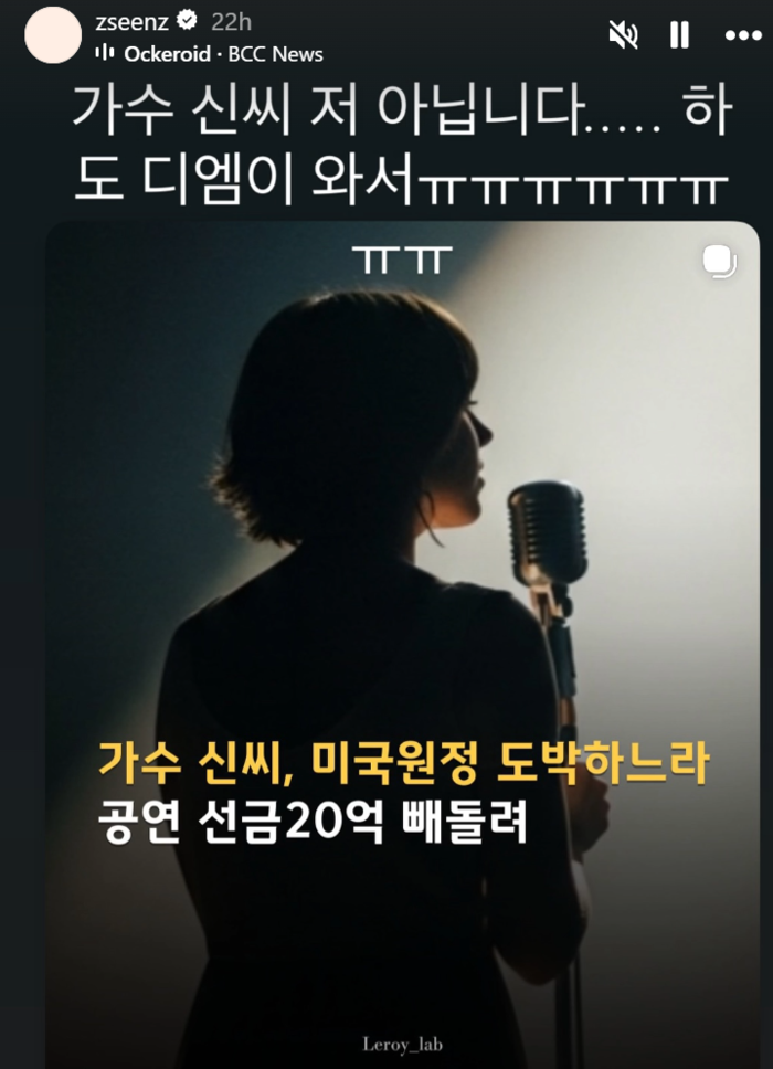 신현희는 31일 자신의 인스타그램을 통해 “해외 원정 도박 의혹 받고 있는 가수 저 아닙니다. 하도 DM이 와서”라는 글을 남기며 관련 루머를 일축했다. 그는 단발머리 여성의 실루엣과 함께 ‘미국 원정 도박하느라 공연 선금 20억 빼돌려’라는 문구가 담긴 이미지를 공유하며, 자신이 해당 보도의 당사자가 아님을 분명히 했다.