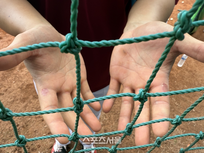 현장에서 만난 설종진 감독은 “이 훈련의 핵심은 정확성이다. 공이 작고 배트가 얇으니 찰나의 순간이라도 집중력이 흐트러지면 정타를 맞출 수 없다”고 설명했다. 여기에 빠른 템포로 몰아치는 ‘속사포 티배팅’이 이어진다. 배트 스피드와 집중력을 동시에 끌어올리기 위한 과정이다. 이 훈련의 강도를 증명하듯 포수 김건희의 손바닥은 까진 곳이 많았다. 반복된 훈련이 남긴 영광의 상처(?)다.