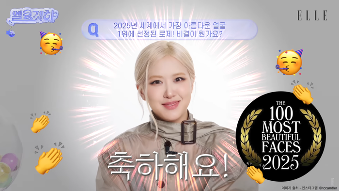 로제는 지난해 12월 미국 영화 사이트 TC 캔들러가 발표한 ‘2025 세계에서 가장 아름다운 얼굴’ 순위에서 여성 부문 1위를 차지하며 글로벌 인기를 입증했다. 해당 순위에는 카리나(8위), 지수(11위), 장원영(26위) 등 다수의 K-팝 스타들이 이름을 올리며 전 세계적인 존재감을 과시했다.
