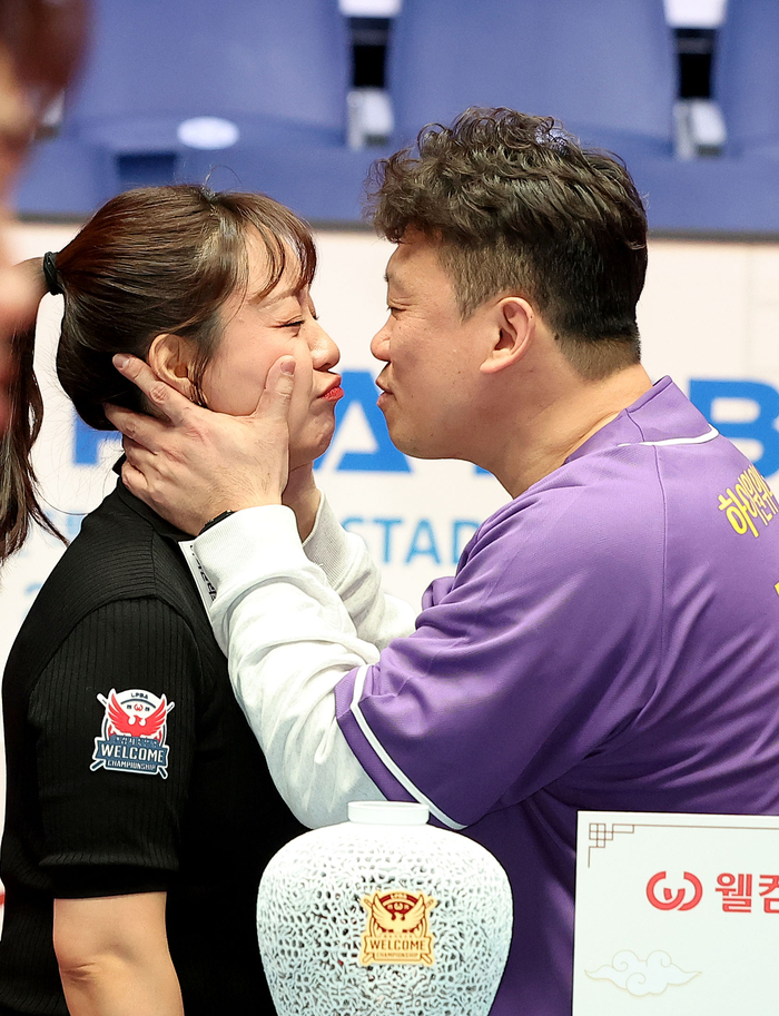 그는 1일 경기도 고양시에 있는 킨텍스 PBA 스타디움에서 열린 2025~2026시즌 9차 투어 ‘웰컴저축은행 챔피언십’ LPBA 결승전 정수빈(NH농협카드)과 경기에서 세트스코어 4-3(11-10 11-9 10-11 7-11 11-5 5-11 9-4)으로 이긴 뒤 “남편은 쿠션을 치는 (당구) 동호인이다. 매 투어 실수한 부분, 멘탈 등에 대해 객관적으로 얘기해준다”며 “과거 (경기에서) 져도 ‘잘 했다, 좀 더 열심히하면 된다’고 말해주고, 맛있는 거 사줬다. 이번엔 내가 크게 사야 한다”고 말했다.