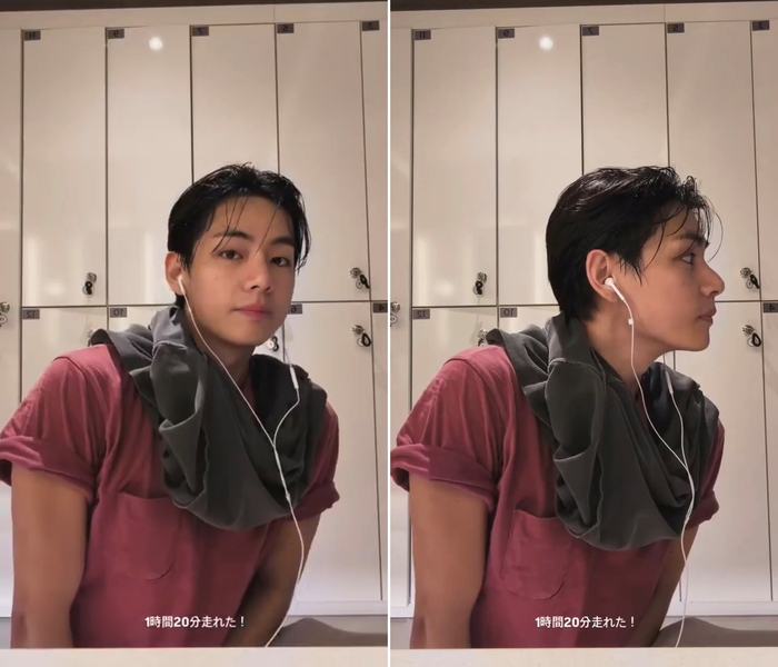 뷔는 1일 SNS로 러닝 영상을 올렸다. 1시간 20분간 달린 뒤 라커룸에서 숨을 고르며 휴식을 취하는 모습도 함께 전했다.