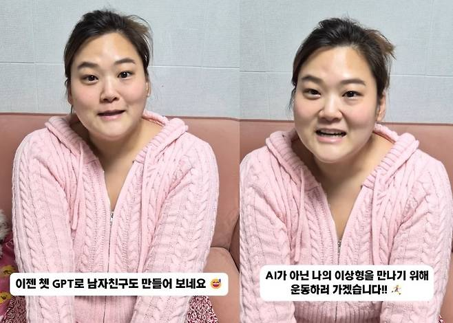 하지만 영상 속 남성의 정체는 실제 인물이 아닌, 최근 온라인상에서 유행 중인 ‘챗GPT 남친 만들기’를 통해 생성된 AI 가상 캐릭터였다. 박수지는 이상형 조건으로 “키 크고 듬직한 체형에 수염 없고 깔끔한 스타일, 말투는 애교 없지만 행동은 다정한 사람”을 꼽으며, AI를 통해 구현된 가상의 연인과 즐거운 시간을 보낸 것.