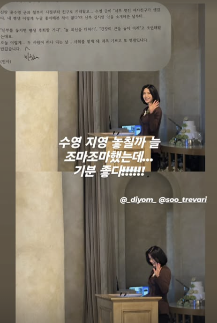 김지영은 1일 자신의 SNS에 지인들이 촬영한 결혼식 현장 사진을 공개했다.