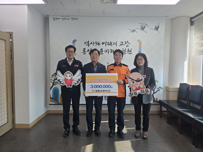 [스포츠서울ㅣ김기원기자]강원특별자치도 철원소방서(서장 최임수)는 2026년 설 명절을 맞아 2일 철원군청에서 생활 형편이 어려운 이웃들이 따뜻한 명절을 보낼 수 있도록 이웃돕기 성금 300만원을 이현종 철원군수에게 전달했다.