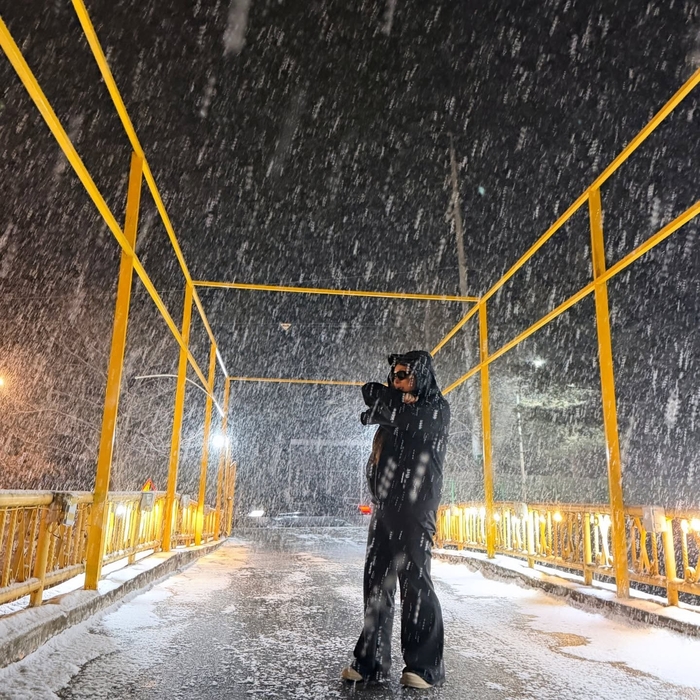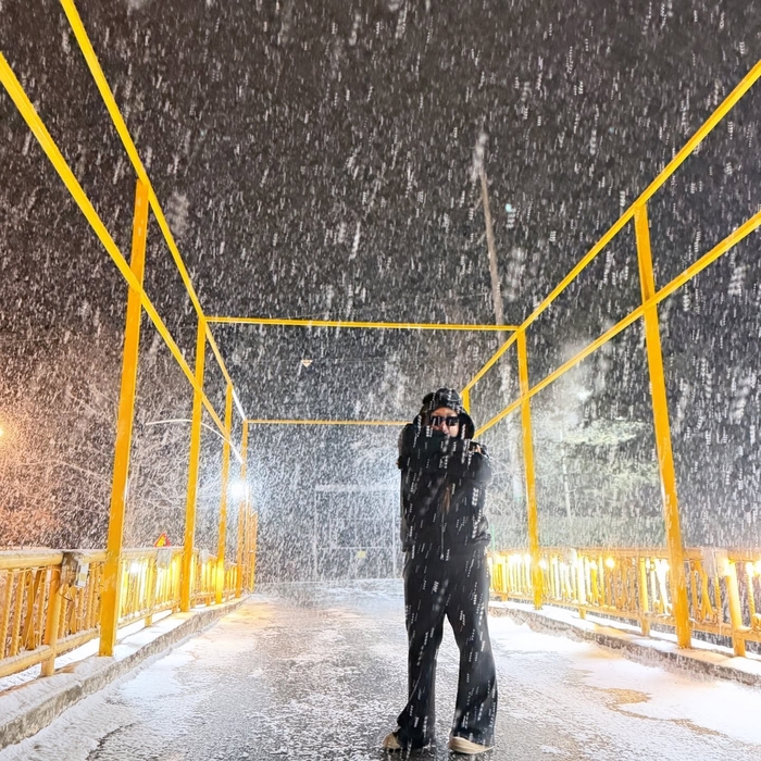 풍자는 1일 자신의 사회관계망서비스(SNS)에 별다른 문구 없이 선글라스와 눈송이 이모티콘을 달며여러 장의 사진을 게시했다. 공개된 사진 속 풍자는 어둠이 짙게 깔린 밤, 펑펑 내리는 눈을 배경으로 노란색 구조물이 인상적인 다리 위에서 포즈를 취하고 있다. 그녀는 머리부터 발끝까지 시크한 올 블랙 패션을 소화하며 쏟아지는 눈발 사이로 몽환적이면서도 이국적인 분위기를 연출했다.