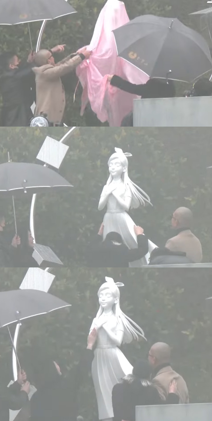 제막식이 시작되자 구준엽은 동상을 덮고 있던 분홍색 천을 직접 제거했고 참석자들이 박수를 치며 동상을 직접 마주했다. 조각상 속 서희원은 드라마 ‘꽃보다 남자’에서의 맑은 이미지처럼 두 손을 가슴 앞에 포개고 눈을 살짝 감은 채 평온한 미소를 짓고 있는 모습이었다.