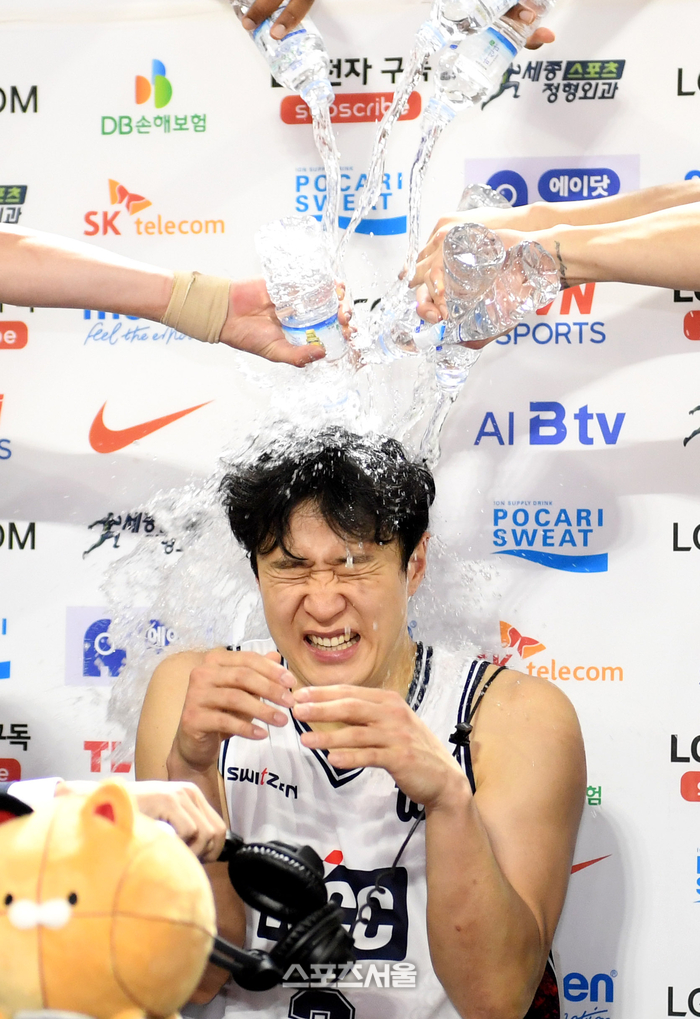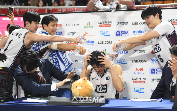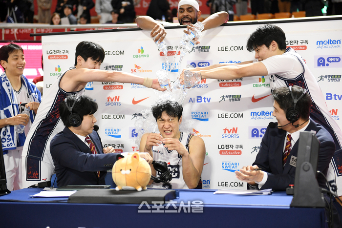 경기가 종료된 후 코트 위에서는 진풍경이 벌어졌다. 수훈 선수 인터뷰를 중이던 허웅에게 동생 허훈과 동료 선수들이 달려들어 머리 위로 시원한 물세례를 퍼부으며 대기록 달성을 축하했다. 허웅은 물에 흠뻑 젖은 상태에서도 환한 미소를 지으며 동료들과 기쁨을 만끽했다.
