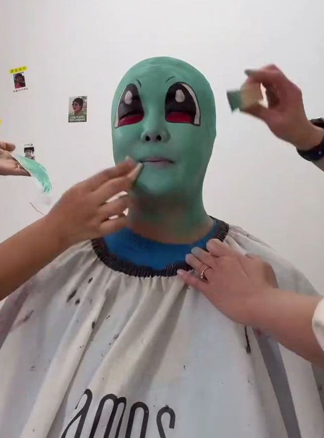 랄랄이 이날 소화한 분장은 머리부터 얼굴 전체를 민트색으로 칠하고 커다란 눈망울을 그려 넣은 ‘꼬부기’ 캐릭터였다. 전문가의 손길을 거쳐 완성된 분장은 실제 캐릭터와 놀라운 싱크로율을 자랑했으나, 엄마의 형체를 알아볼 수 없을 정도의 파격적인 변신은 결국 딸의 울음보를 자극하고 말았다.