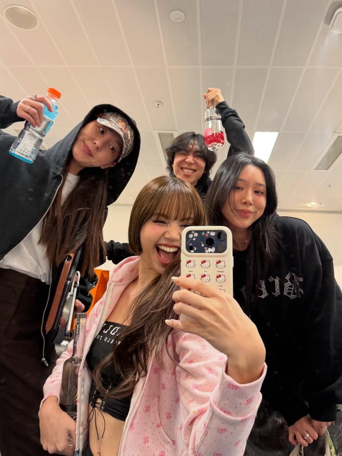 함께 공개된 다른 사진에서는 지인들과 함께 데킬라 병을 번쩍 들어 올리며 즐거운 시간을 보내는 리사의 장난기 가득한 모습도 담겼다. 분홍색 후드 집업에 블랙 크롭티를 매치한 리사는 군살 하나 없는 완벽한 허리 라인과 인형 같은 비주얼을 뽐냈다.