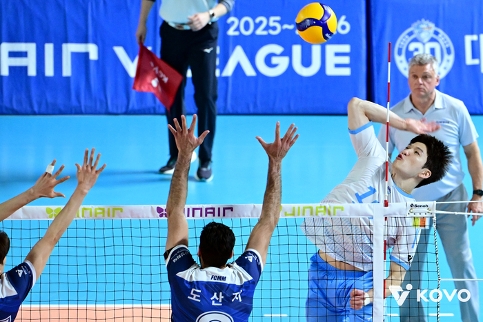 그나마 다행인 건 정지석의 빠른 회복세로 지난달 20일 한국전력을 통해 복귀전을 치렀다. 몸 상태가 완벽하지는 않으나 경기를 뛰며 조금씩 제 모습을 되찾아가고 있다. 정지석은 3일 대전충무체육관에서 열린 진에어 2025~2026 V리그 삼성화재와 맞대결에서 9득점으로 팀의 2연승에 보탬이 됐다.
