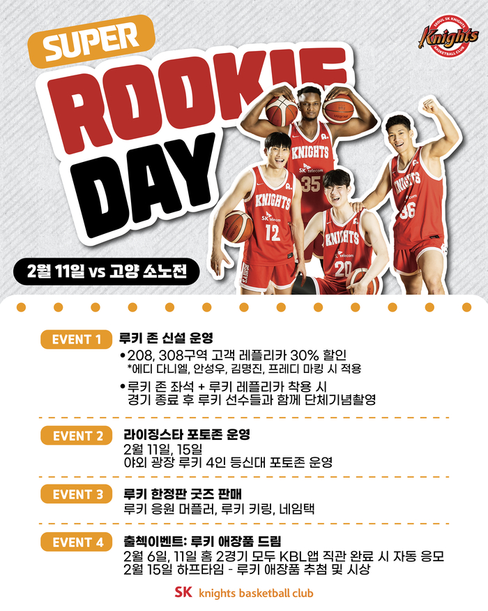 SK는 “11일 오후 7시에 열리는 고양 소노와 홈경기에서 루키 데이 이벤트를 실시한다”고 4일 밝혔다.