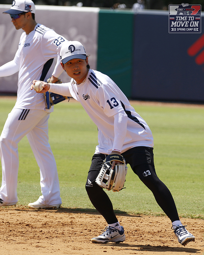 4일 호주 시드니 스프링캠프 현장에서 만난 이유찬은 “지금 수비 연습은 유격수와 2루수 하고 있다”고 설명했다. 백업 유격수를 대비하는 동시에 주전 2루수 자리를 꿰차야 한다.