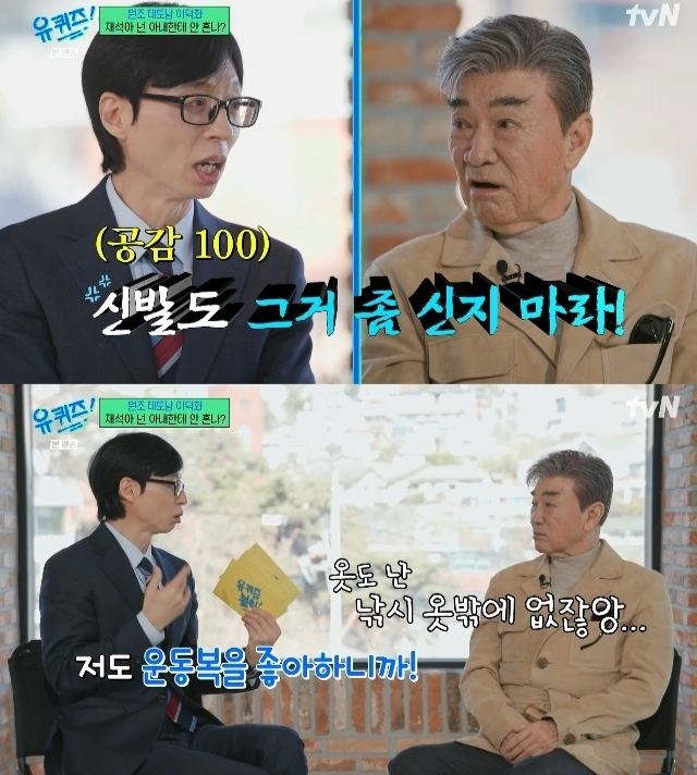 이덕화는 아들의 제보를 인용하며, 눈 뜨는 순간부터 잠들 때까지 아내에게 혼이 난다고 털어놨다. 그는 “나 많이 혼난다. 진짜 하루 종일 혼난다. 하지 말라는 게 너무 많다”며 담배, 반찬, 옷차림 등을 이유로 들었다. 이에 유재석 역시 “비슷하다. 저도 운동복 좋아해서 그것만 입으니까 왜 옷 두고 똑같은 거만 입냐고 하더라”며 공감했다.
