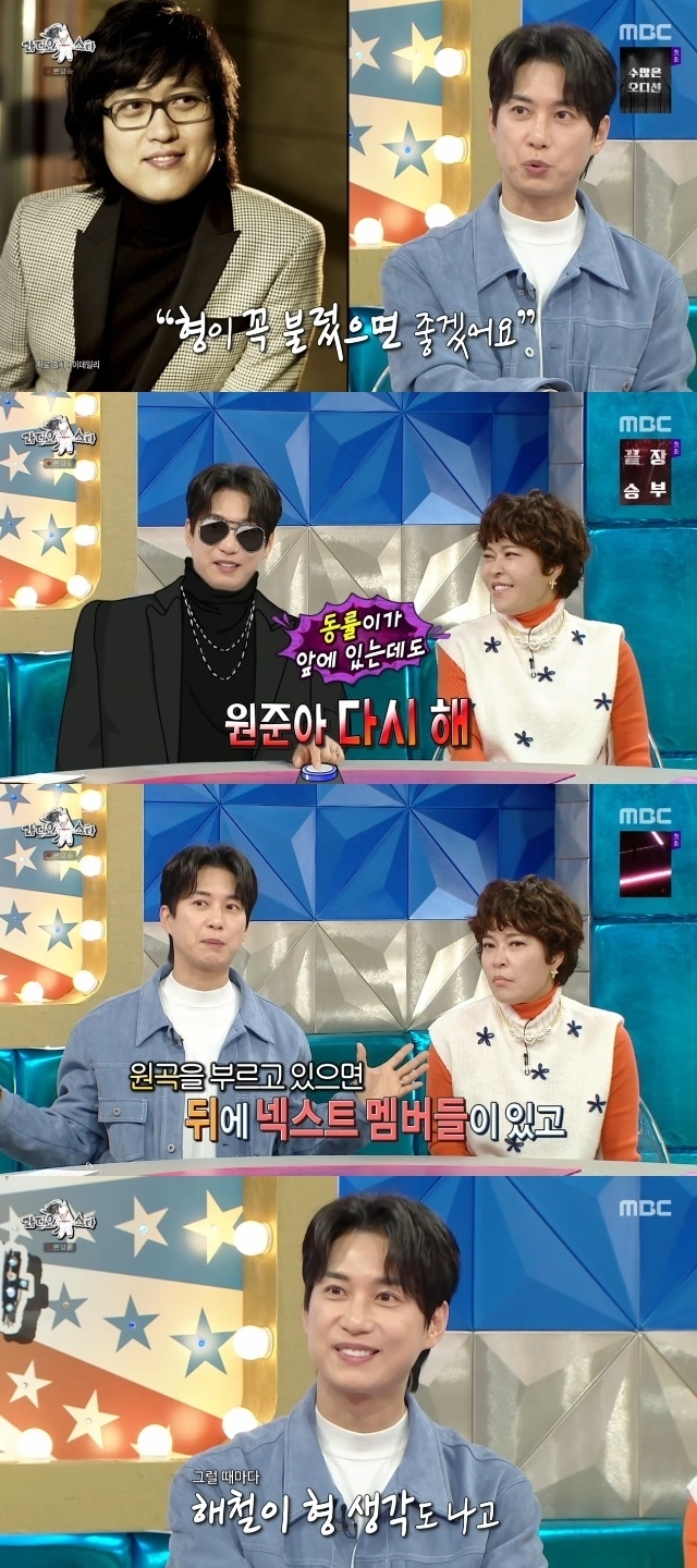 이를 들은 김구라는 “김동룔의 ‘Show’의 주인공은 김원준이고, 김원준의 ‘Show’의 주인공은 어떻게 보면 신해철인 거 아니냐”고 정리하자 김원준도 동의했다.
