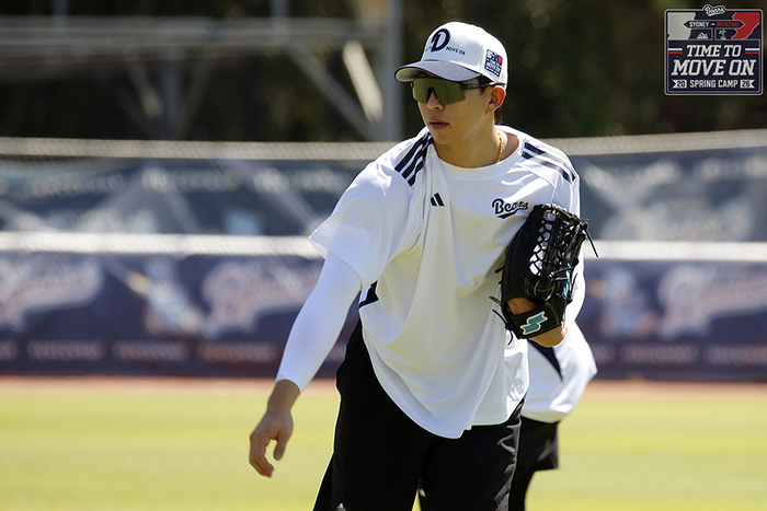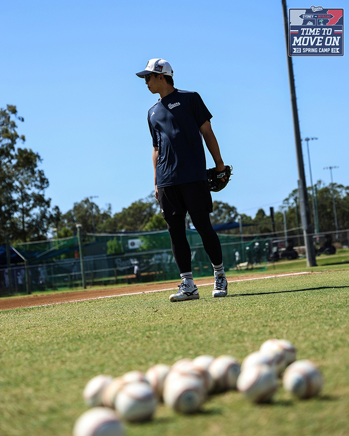 5일(한국 시간) 호주 시드니 블랙타운 야구장 스프링캠프장에서 만난 김민석. 2026시즌 목표를 묻자, 김민석은 “안타 100개 이상 치겠다”고 힘줘 말했다.