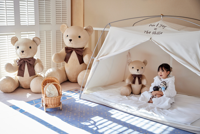 신라베어 테마룸에는 아이들의 호기심을 자극하는 키즈 텐트를 비롯해 소·중·대형 신라베어 인형, 신라베어 자수 쿠션과 키즈 배스로브 등 테마 소품이 곳곳에 배치됐다. 객실에 들어서는 순간부터 놀이 공간에 온 듯한 분위기를 연출해 아이에게는 즐거움을, 부모에게는 휴식과 사진 촬영의 재미를 동시에 제공한다.