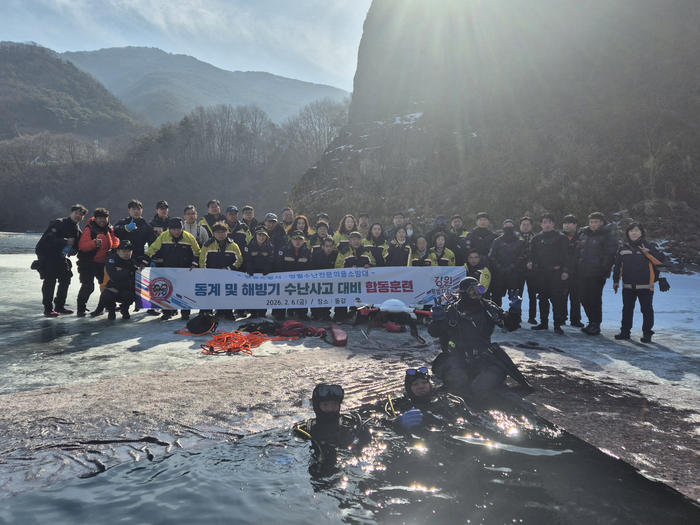 훈련 주요 내용은 ▲드론을 활용한 익수자 수색 및 구조 ▲수중 인명탐색 훈련 ▲빙상 및 내수면 수난사고 대응 전술 숙달 등으로, 구조대원과 의용소방대원이 역할을 분담해 유기적인 공조 체계를 점검했다.