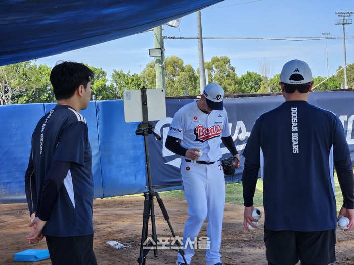 6일(한국 시간) 호주 시드니 블랙타운 야구장에서 두산 스프링캠프 세 번째 턴 마지막 날 훈련이 진행됐다. 투수조는 늘 그랬듯 현지 시각으로 오전 10시에 불펜투구에 들어갔다.